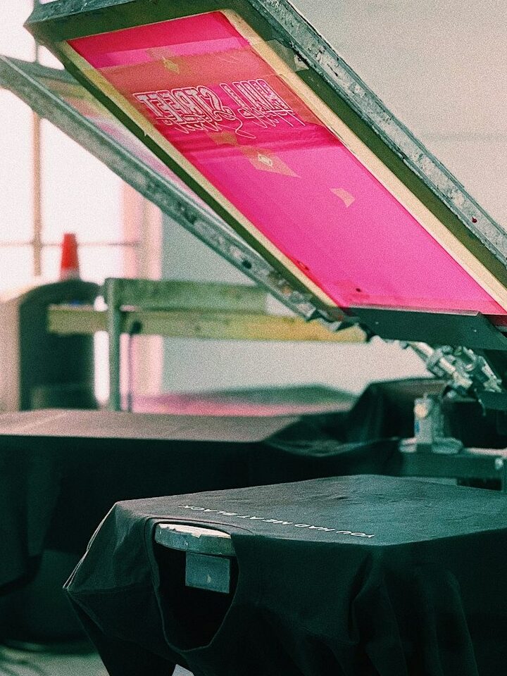 A serigrafia é uma técnica de impressão que utiliza uma matriz para aplicar tinta directamente sobre o material, garantindo grande precisão e qualidade na estampa.