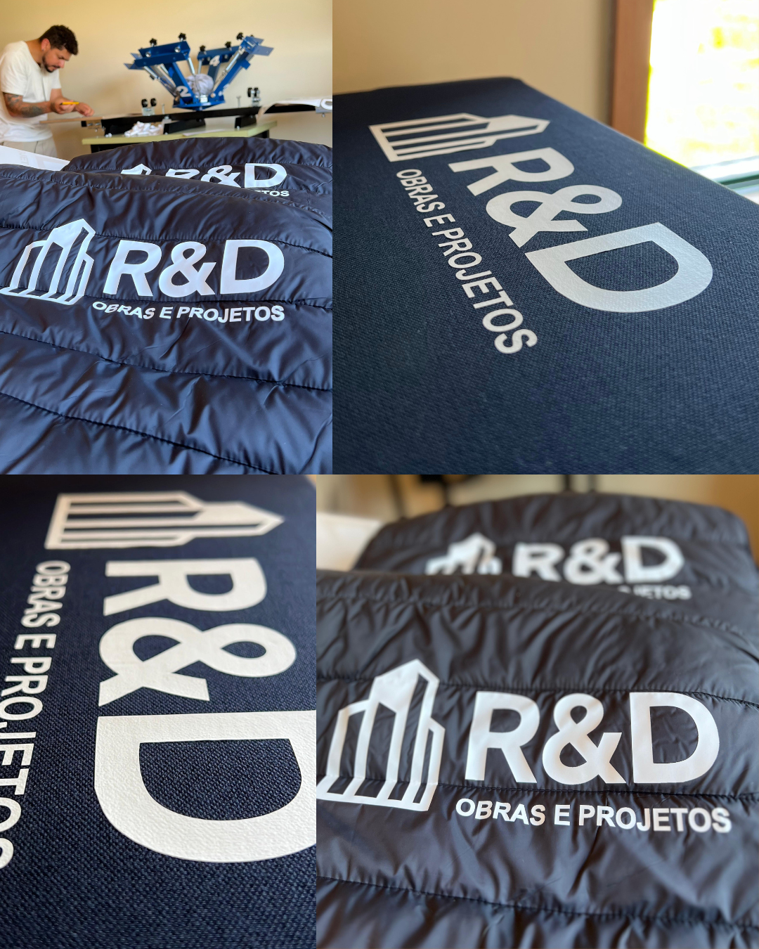 Trabalhamos com uma ampla variedade de peças têxteis: t-shirts, polos, hoodies, coletes, bonés e muito mais — prontos para receber a identidade da sua marca.
